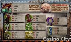 Something bad has happened to the world and you have to be careful! Watch where you're going, there are zombies everywhere and they want to eat your brains. Roll the reels and see what zombies are coming after you. Find three or more brain bonus symbols to activate the bonus game.
