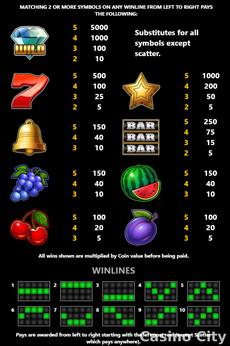 Diamond Joker Respin is a five-reel slot played over 10 lines that pay when two or more matching symbols land on any active winline. The Joker Scatter appears on reels 1, 3, and 5, with all three at once leading to Bonus Spins. There all Jokers will function as Wilds. The main feature of the game revolves around the Respin offer, giving players the chance to Respin just one of the reels for the value shown. There's also a gamble feature that one can play up to 10 times in succession or until the prize exceeds 5,000 coins.