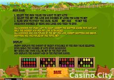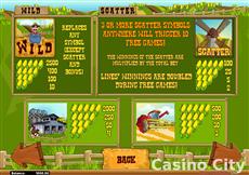 Hike up your denim overalls and get ready for some fun in this 5 reel 9 line slot game. Farm Fair features all your favorite features, plus let's you raise your own herd! Pick from a lamb, a calf, a chick, or a pig as your raise your animal for the county fair!