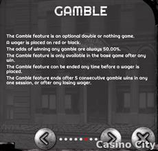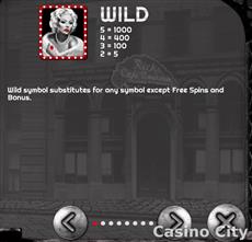 Offers up to 20 Free Spins with extra stacked Wilds and Free Spins trigger prizes. This exciting feature starts with a Multiplier Movie Theatre mini-game awarding up to 10X multiplier and re-triggering. Paint the Town Red or Black for a 50/50 chance at doubling your winnings.