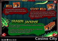 Japanese anime style characters use their shuriken, nunchacku and katana samarai swords to fight the dark forces. A mighty Dragon is Wild. It can spin into place on any reel, or a ninja can throw them onto the reels. During free spins, they're Sticky Wilds. They stick to their position until the free spins end (or the local jackpot is hit).