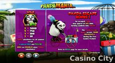 Pandamania is a five-reel, 25-payline video slot with features including Autoplay, Bonus Rounds, Free Spins, Scatter Symbols, and Wild Symbols.