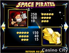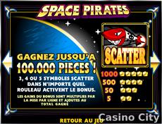 Space Pirates is a 5-reel, 20-line slot with scatters, wilds, and an autoplay feature.